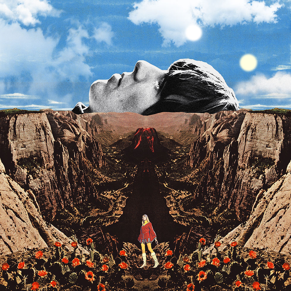 I’m mostly inspired by the music I listen to, predominantly music from the 1960s and 1970s, Folk, Americana, Rock. I draw the majority of my influence from the songwriting happening at that time in particular, it’s unmatched and overly relevant still. I try to envision what particular parts of the songs may look like as a landscape scene or just an abstract vision, as if it were a snapshot to the music video. I also tend to find inspiration from films that I've seen, taking little references I like and creating a small world out of them. A lot of my work often also communicates a message of escapism, which I think began unintentionally. I started creating collages during the first lockdown purely out of complete boredom, which I think inevitably caused me to start creating work that harboured themes of longing to be elsewhere.